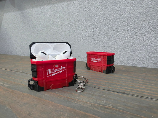 Milwaukee Inspired Packout Air Pods Pro and Gen4 Case - 3D Printed Tool Crate Style with Snap-Fit Lid & Keychain Loop for Air Pods Pro