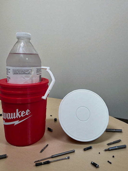 Milwaukee-Style Mini Bucket Koozy with Lid 3D Printed Drink Holder Funny Tool Fan Gift for Milwaukee Enthusiasts
