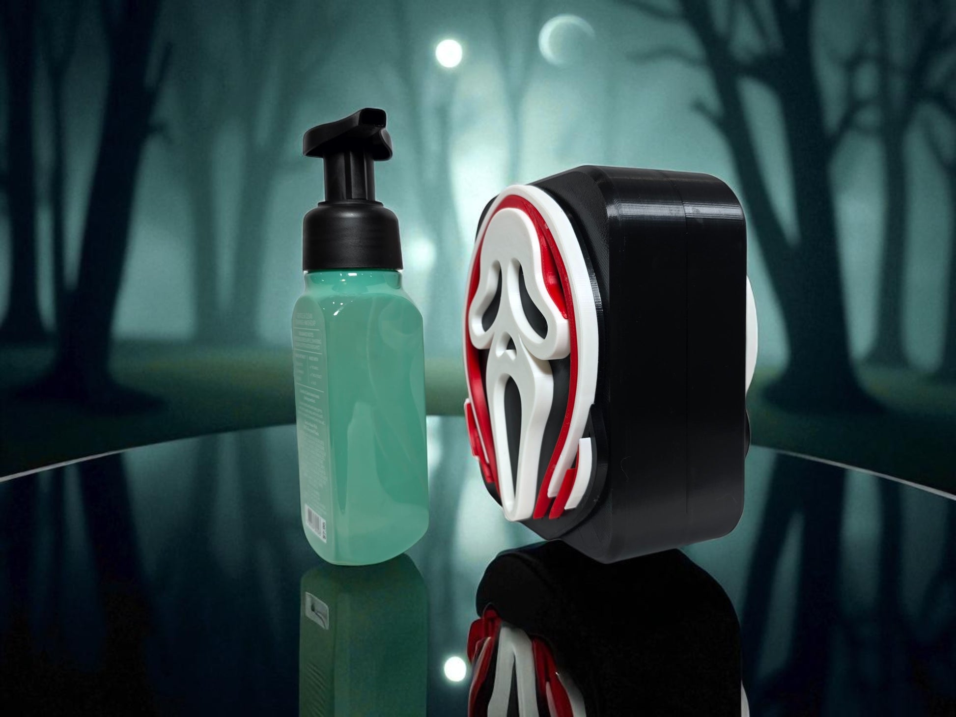 Bring horror vibes into your bathroom with this Ghostface Soap Dispenser Cover . Designed to fit most standard foaming soap bottles, this 3D-printed piece is the perfect mix of spooky decor and everyday function.