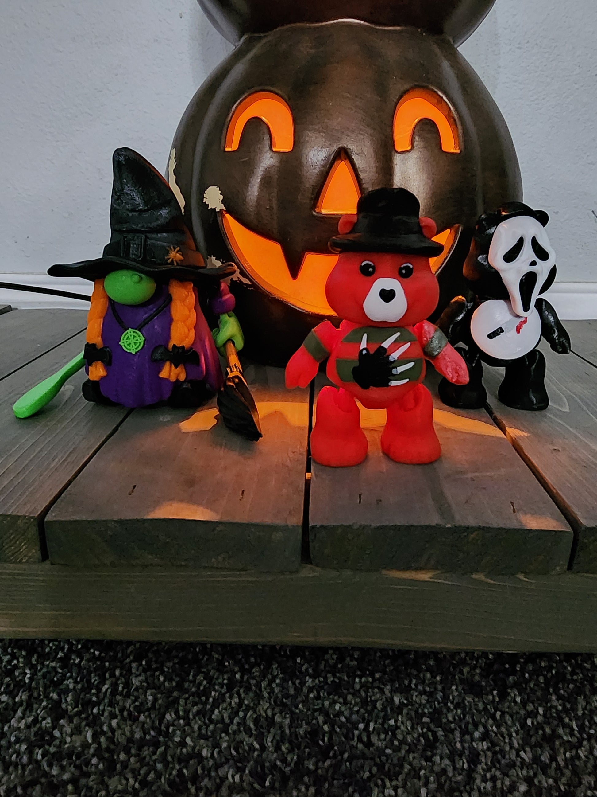 Bring a touch of Halloween spookiness to your home decor with this Freddy Kruger and Care Bear figurine!