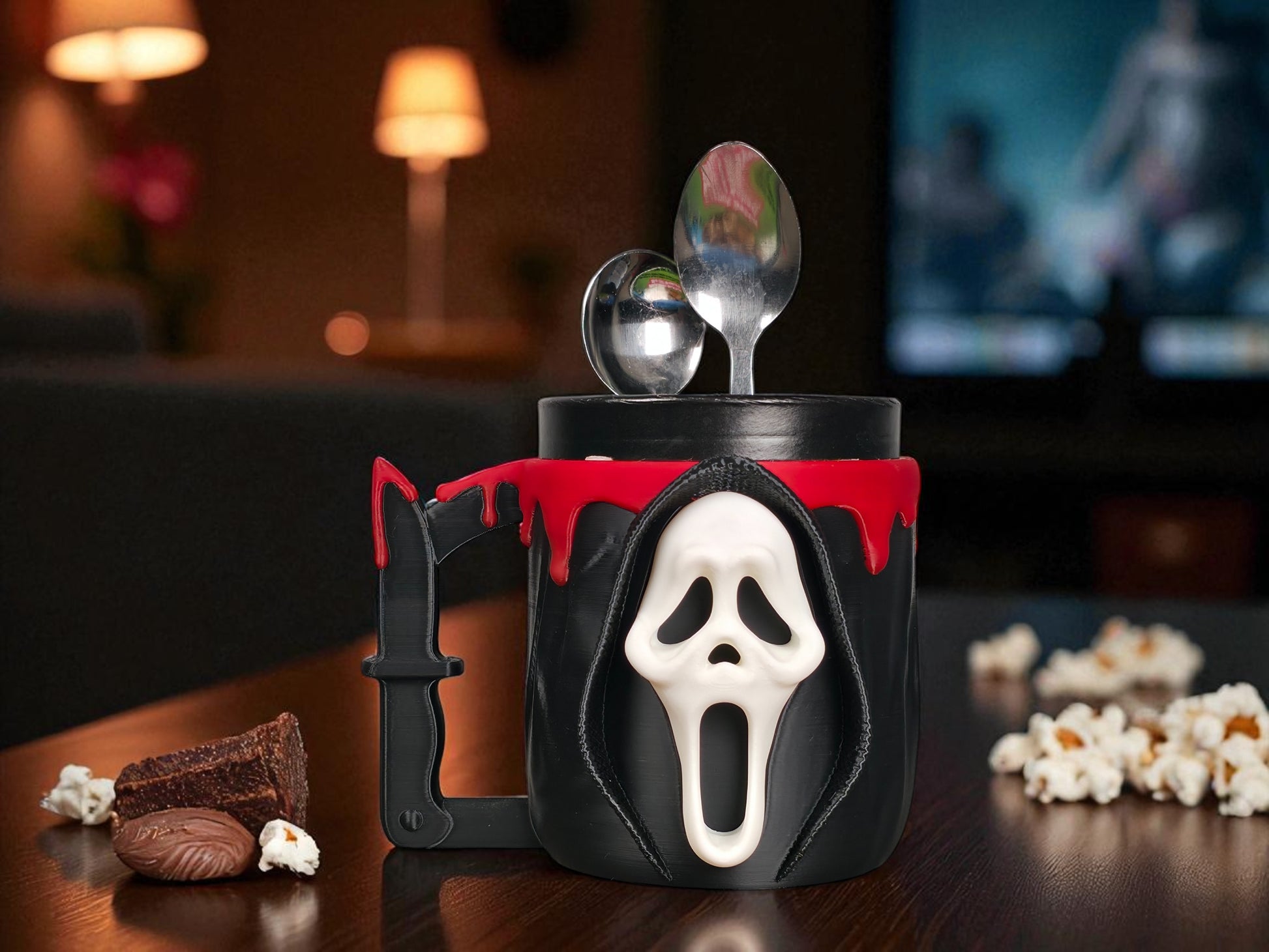 Horror Ghostface Ice Cream Pint Holder β Knife Handle & Spoon Slots