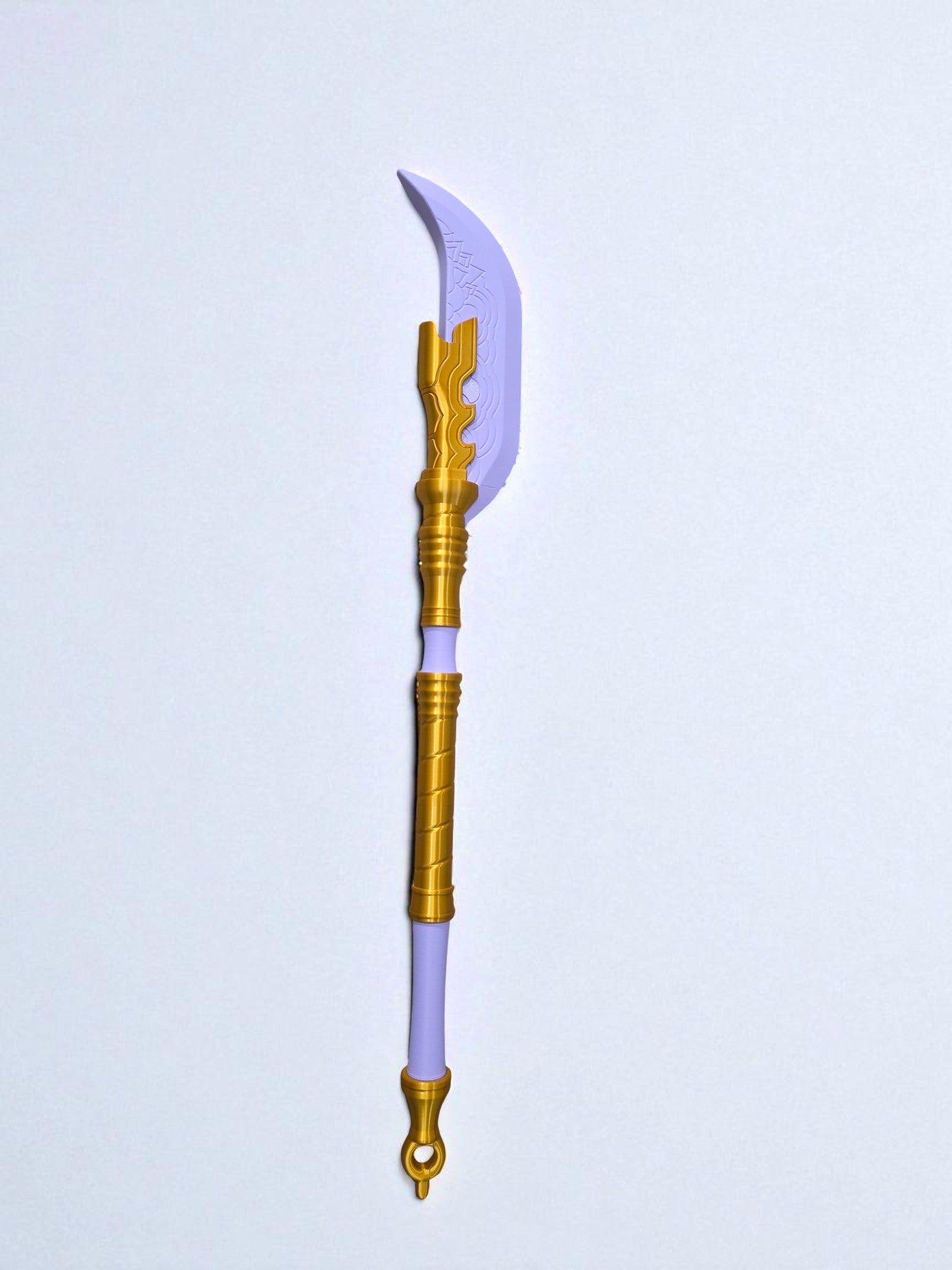 This 3D-printed glaive is crafted for cosplayers and fantasy enthusiasts, blending K-Pop-inspired design with a powerful, cinematic look.