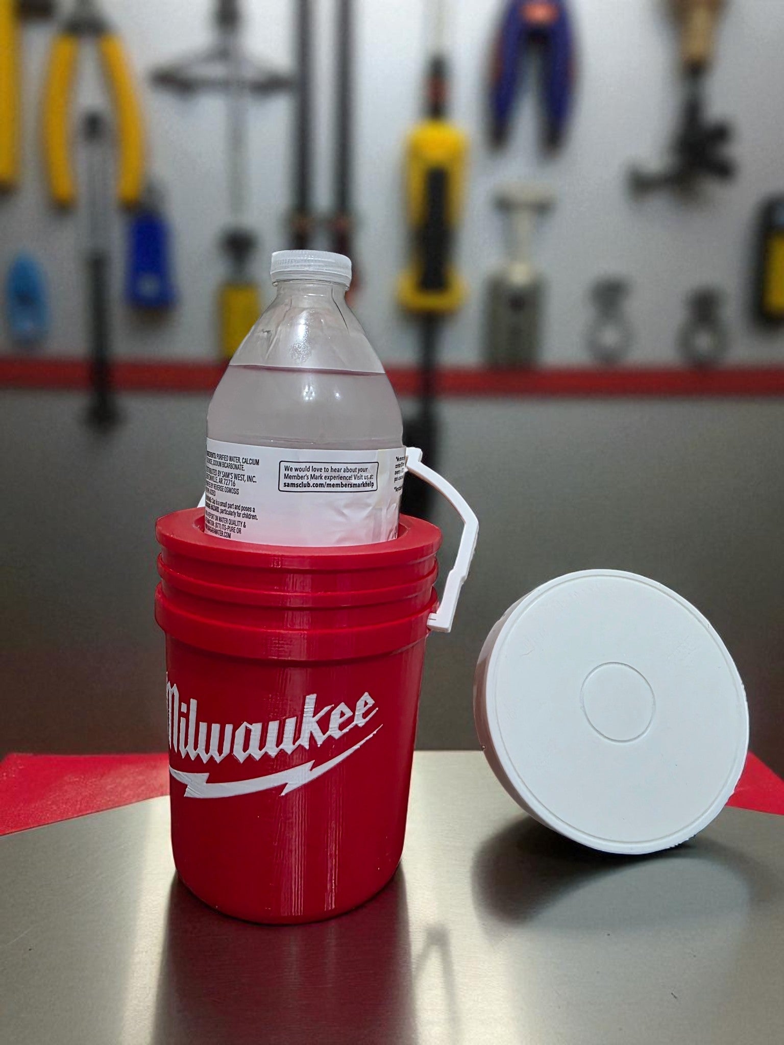 Milwaukee-Style Mini Bucket Koozy with Lid 3D Printed Drink Holder Funny Tool Fan Gift for Milwaukee Enthusiasts